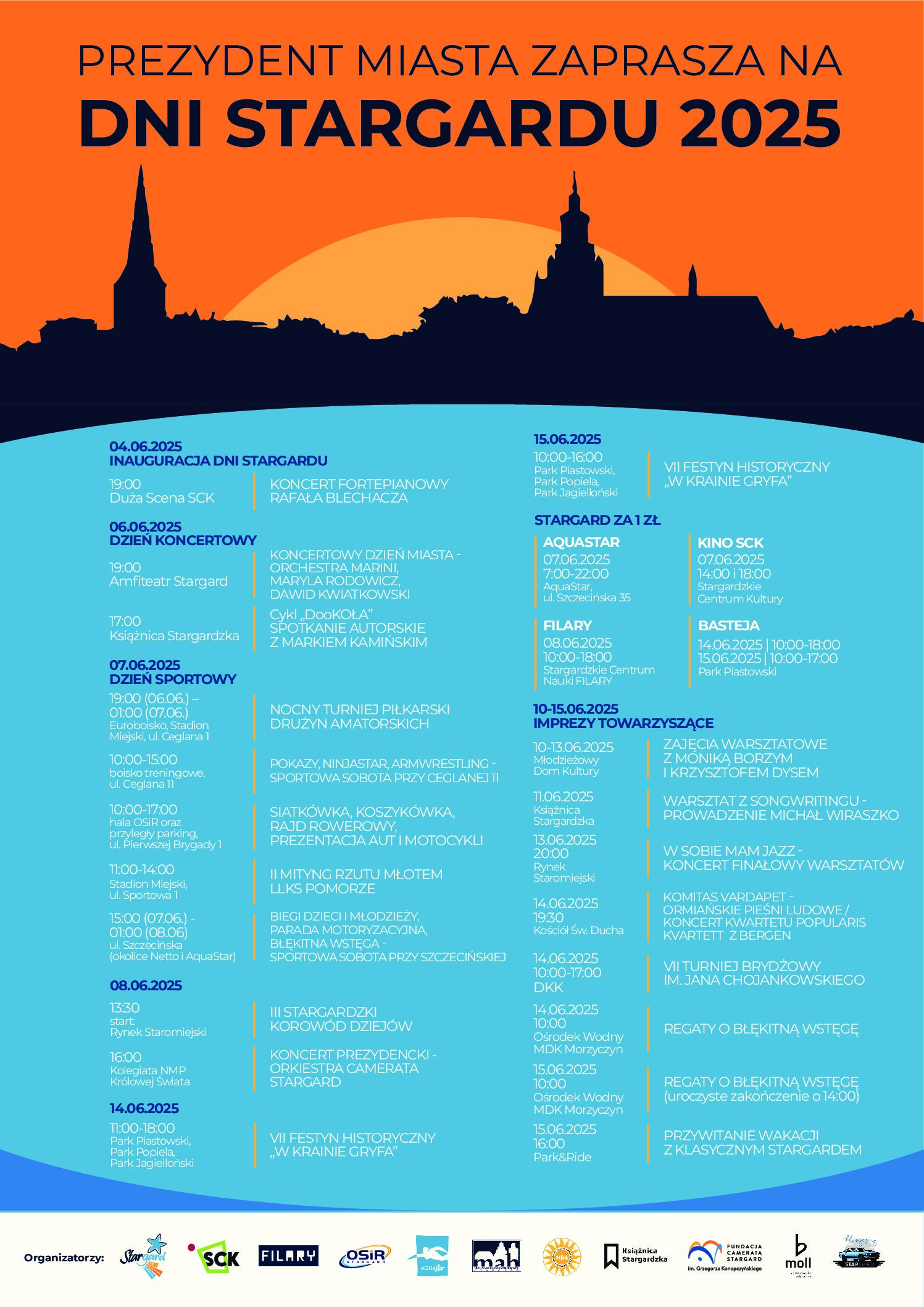 Przed nami dwa tygodnie pełne niezapomnianych emocji, świetnej zabawy i niezwykłych wydarzeń! Będzie koncertowo, artystycznie, kulturalnie i sportowo – każdy znajdzie coś dla siebie. To nie wszystko! Stargardzianie i goście będą mogli wziąć udział w wielu imprezach towarzyszących. Zarezerwujcie czas i bądźcie z nami – Dni Stargardu 2025 zapowiadają się wyjątkowo!