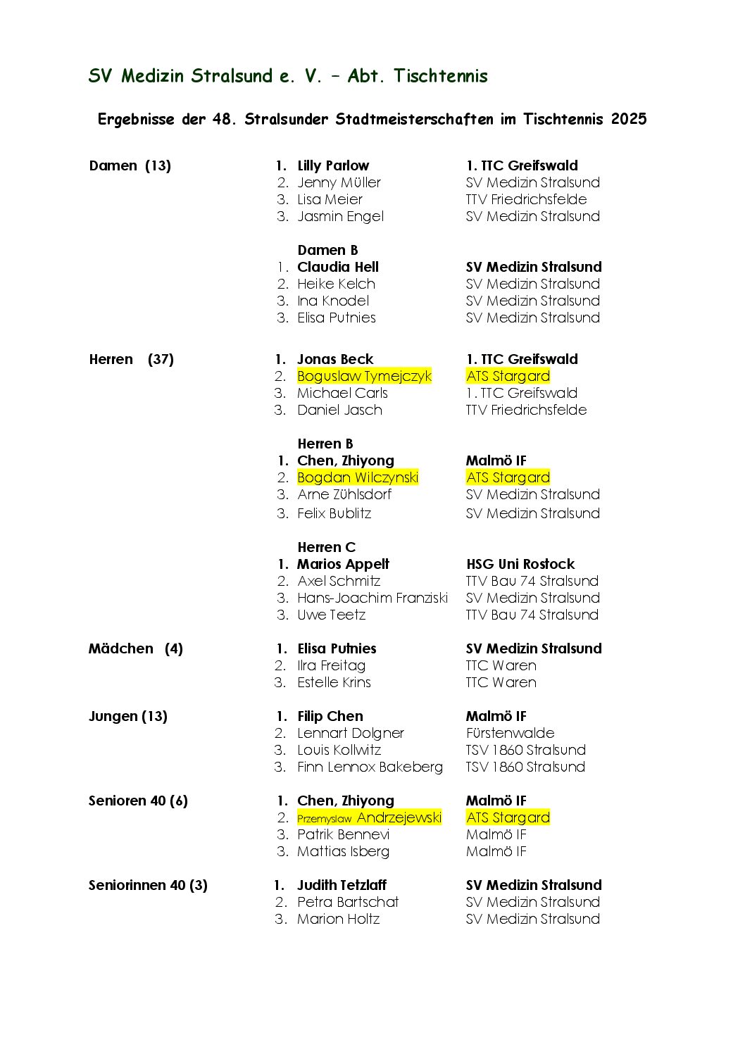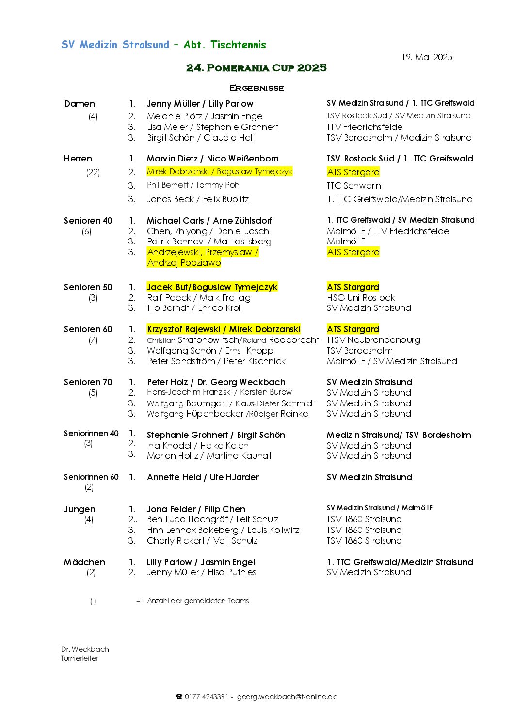 W dniach 2 – 4 maja 2025 r miał miejsce wyjazd zawodników Klubu ATS Stargard na Pomerania Cup w Stralsundzie. W turnieju wzięło udział 8 naszych zawodników :