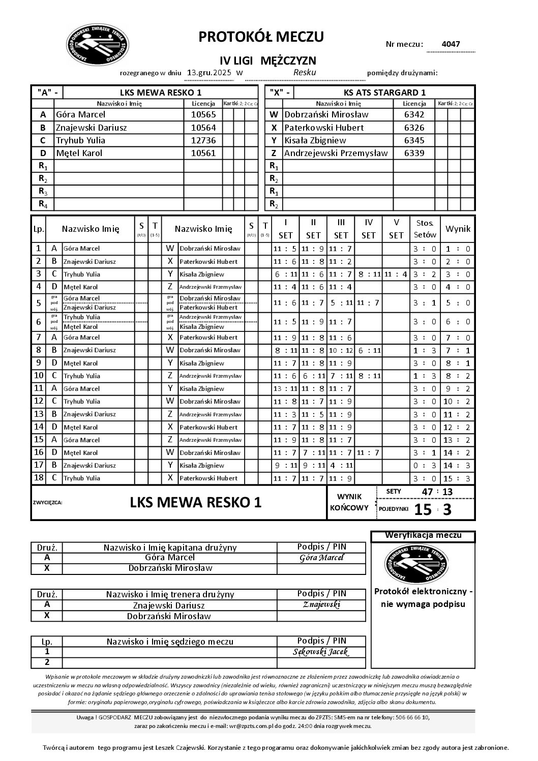 Rozgrywki Ligowe – I Runda 6 kolejka