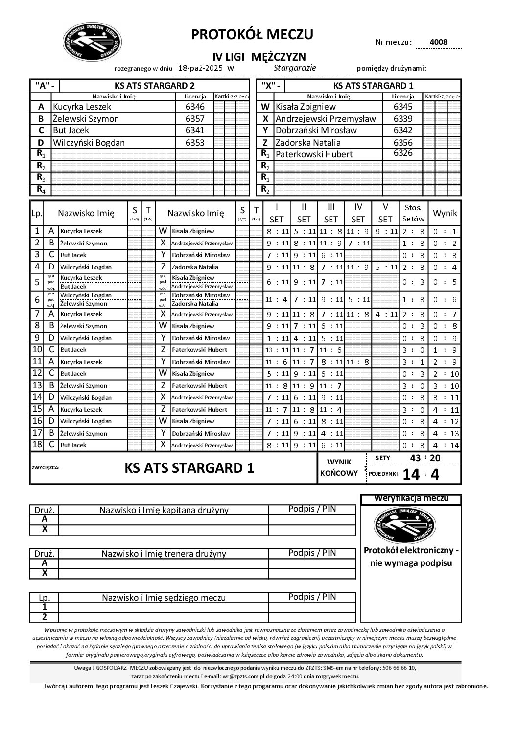 Rozgrywki Ligowe – I Runda I kolejka – IV liga mężczyzn